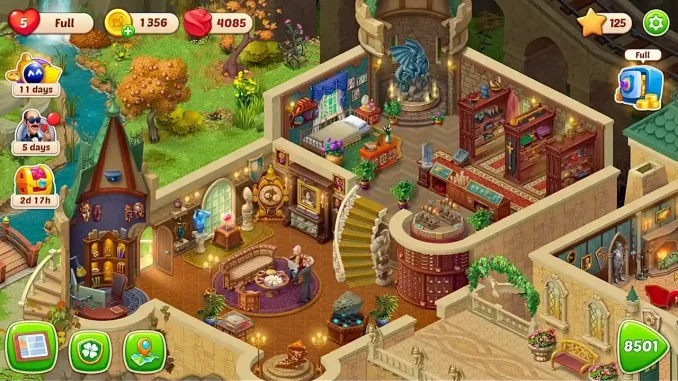 Hal yang membuat Homescapes menonjol dibanding game puzzle lain adalah sistem renovasi rumah yang terintegrasi langsung dengan gameplay. Setiap bintang yang didapat dari puzzle digunakan untuk memperbaiki berbagai bagian rumah, mulai dari tangga, ruang tamu, hingga dekorasi kecil seperti wallpaper dan furnitur. Pemain juga diberikan pilihan desain tertentu, memberikan rasa personalisasi walaupun tidak terlalu berpengaruh pada gameplay. Progres ini terasa memuaskan karena pemain bisa melihat perubahan visual rumah secara bertahap dari berantakan menjadi nyaman dan indah. Konsep before dan after menjadi salah satu elemen paling memikat karena memberi reward visual yang nyata. Meski begitu, beberapa pemain merasa sistem ini sedikit repetitif karena hampir semua aksi membutuhkan bintang, sehingga terkadang terasa seperti grind yang panjang.